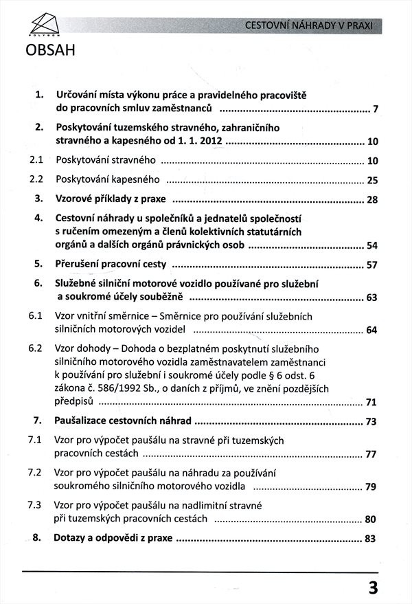 Příručka přináší vzory výpočtů i právních institutů a vysvětlení postupů týkajících se poskytování náhrad cestovních výdajů v souvislosti s novelou zákoníku práce platnou od 1. 1. 2012.