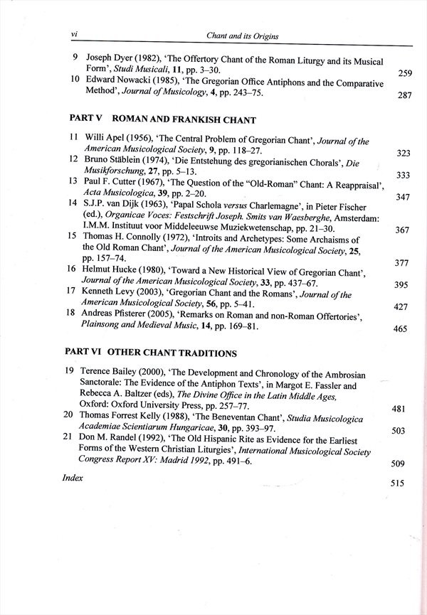 První svazek z americké edice textů věnovaných evropské středověké hudbě se zabývá ranou historií, tradicí a repertoárem středověkých zpěvů a žalmů a jejich ediční problematikou a přetiskuje analytické studie různých autorů.