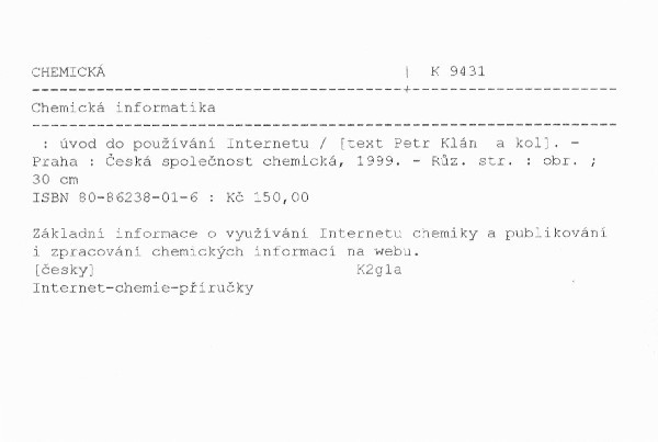 Základní informace o využívání Internetu chemiky a publikování i zpracování chemických informací na webu.