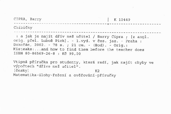 | Autor | Barry Cipra ; [z angl. orig. přel. Luboš Pick] |