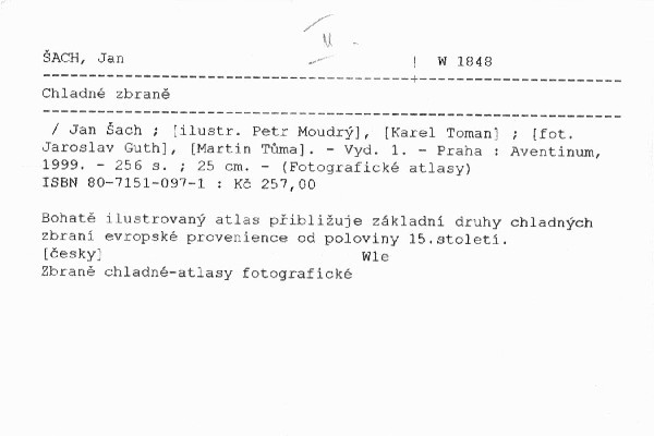 Bohatě ilustrovaný atlas přibližuje základní druhy chladných zbraní evropské provenience od poloviny 15.století.