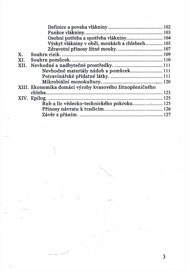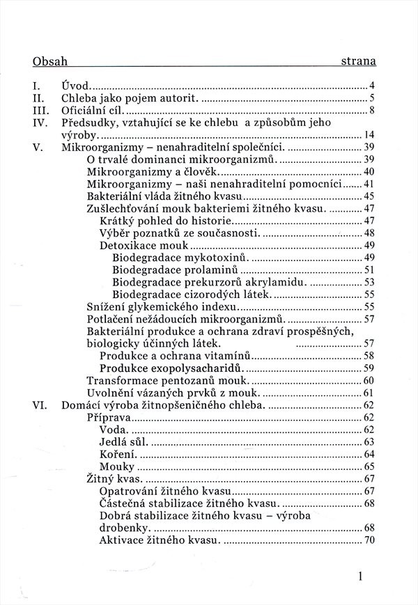 Kniha se věnuje současné kvalitě pečeného chleba, používání přídatných látek, zvýšení výživné hodnoty atd. Popisuje osvědčenou jednoduchou cestu k tradičnímu a chutnému domácímu žitnopšeničnému chlebu i její úskalí.