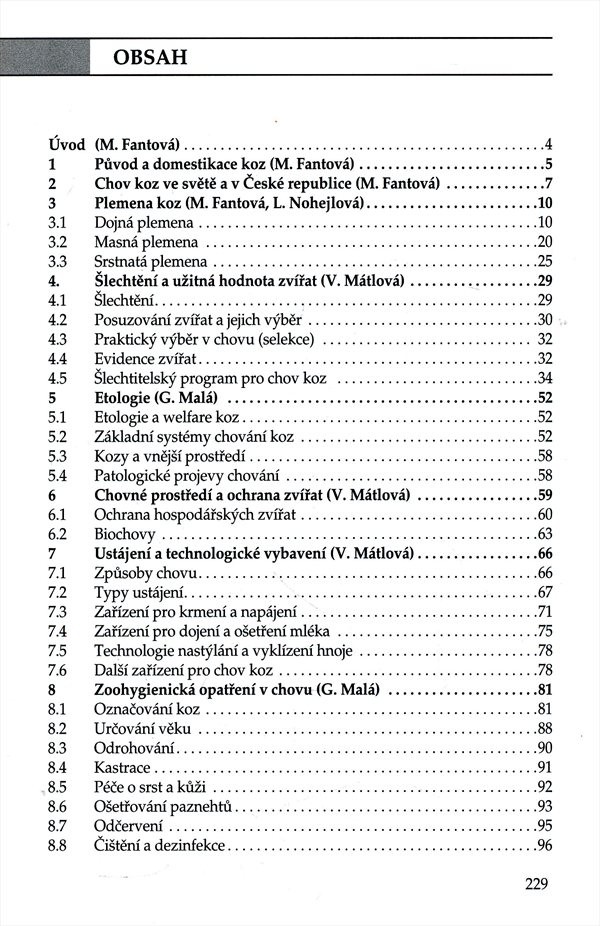 Obsah OCHuChov skotu. Chov ovcí a koz. Chov prasat.
