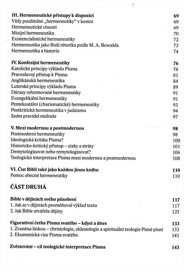 Výčet možností čtení Bible v duchovní tradici křesťanské církve a současně s využitím poznatků moderní biblické hermeneutiky.