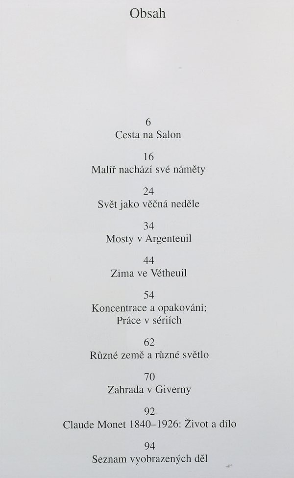 Monografie francouzského malíře a grafika, významného představitele impresionismu, význačného průkopníka plenérové malby. Výklad doprovází množství barevných reprodukcí Monetových děl ze všech období jeho tvorby.