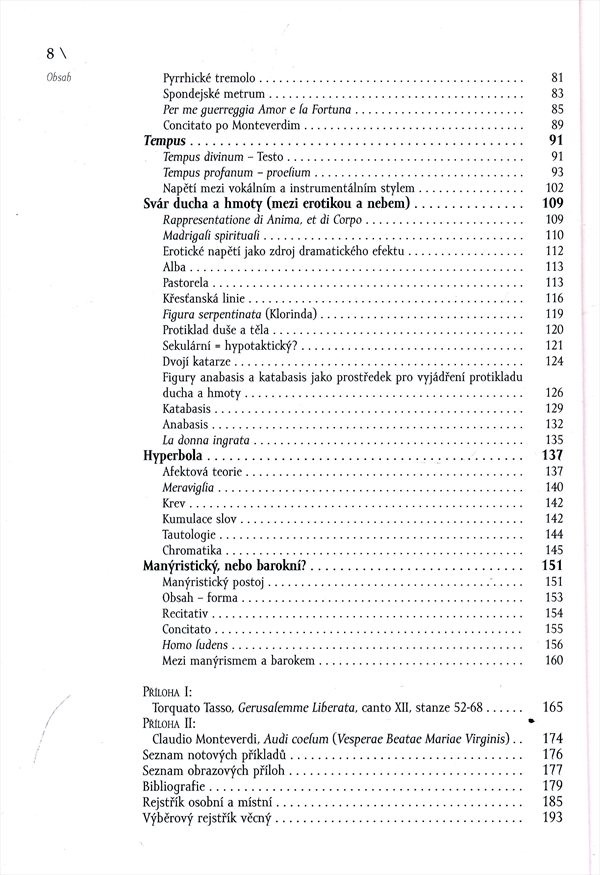 Na základě hudebně historické, formální a stylové analýzy jednoho z děl italského raného baroka z počátku 17. století (1624) odkrývá autor vzájemně se ovlivňující procesy epochy, v níž se prvky manýrismu prolínají s nastupujícím stylem baroka.