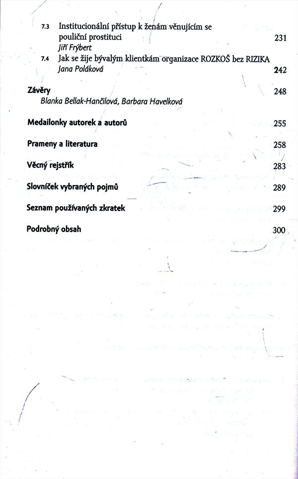 Kniha představuje českému publiku zahraniční, zejména feministické, teoretické debaty o veřejných politikách prostituce a současné trendy v právních úpravách této problematiky. Předkládá rovněž kritickou analýzu české situace – jak stávajících i navrhovaných právních úprav, tak vnímání prostituce ve veřejném prostoru, zejména mezi odborníky a odbornicemi, ve veřejné správě a v médiích. Publikace obsahuje řadu doporučení pro veřejné politiky dotýkající se prostituce a její právní úpravy, nenabízí ale žádná jednoduchá a rychlá řešení. Autorky a autoři zejména identifikují, čeho je třeba se při formulování veřejné politiky a právní úpravy prostituce a jejího uplatňování v praxi vyvarovat, a to zejména s ohledem na lidská práva a požadavek genderové rovnosti. Kniha detailně rozebírá a kriticky hodnotí návrhy zákona na regulaci prostituce, které v posledních letech zpracovává a Poslanecké sněmovně předkládá hlavní město Praha. (Nakladatelská anotace)