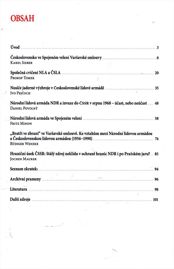Studie věnované vzájemným vztahům i působení československé a východoněmecké armády v řadách Varšavské smlouvy.