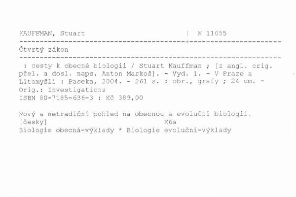| Autor | Stuart Kauffman ; [z angl. orig. přel. a dosl. naps. Anton Markoš] |