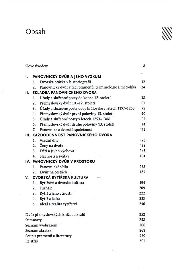 Podoba a fungování přemyslovského dvora od 10. do 14. století. Dvorské úřady, každodenní i slavnostní život na dvoře přemyslovských knížat a králů.