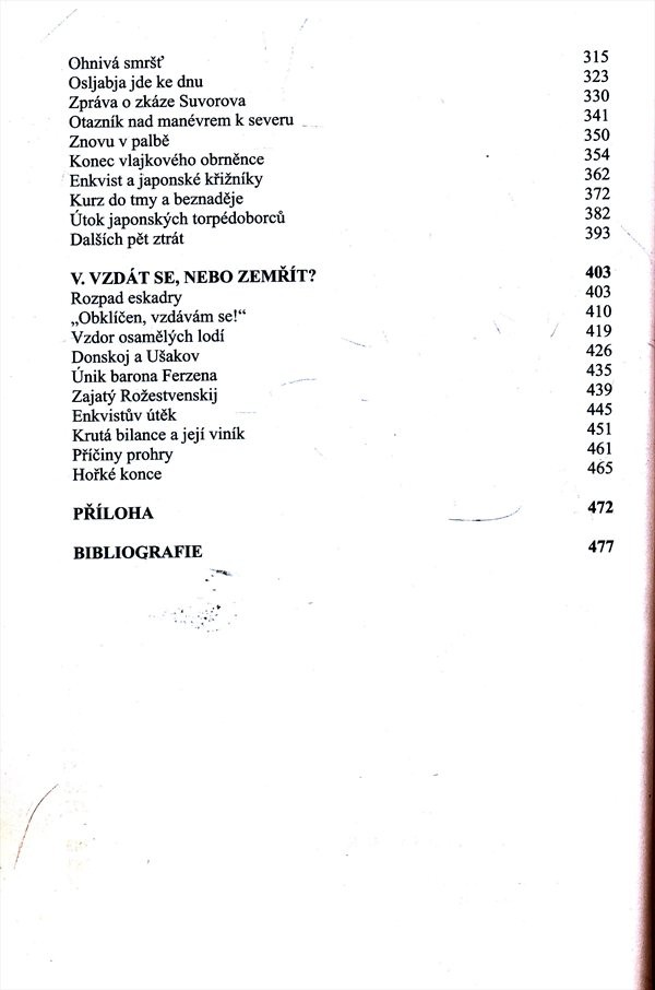 Známý historik a autor z oblasti literatury faktu se ve své práci soustředí nejprve na samotné rozpoutání rusko-japonského konfliktu, dále popisuje ruské pronikání na Dálný východ od 19. století, sleduje životní osudy velitelů obou námořních sil (Heihačiró Tógó a Zinovoj Rožestvenskij), dále budování ruského a japonského loďstva v oblasti Dálného východu, přesun ruské 2. Tichooceánské flotily z Baltského moře do východní Asie. Poslední dvě kapitoly se soustředí na samotný průběh z bitvy u Cušimy konce května roku 1905, které přinesla Rusům těžkou porážku, a zárověň příčiny ruského neúspěchu v tomto námořním střetnutí. Fotografie, obrázky, technické údaje o plavidlech, přílohy.