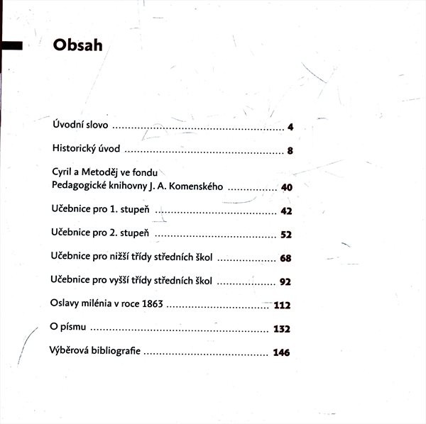 Informační a fotografická publikace zabývající se fondem Národního pedagogického muzea a knihovny J. A. Komenského, zejména historickými učebnicemi s cyrilometodějskou tématikou.