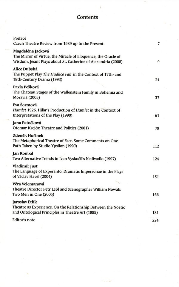 Deset teatrologických studií z časopisu Divadelní revue z let 1989-2009 v překladu do angličtiny.