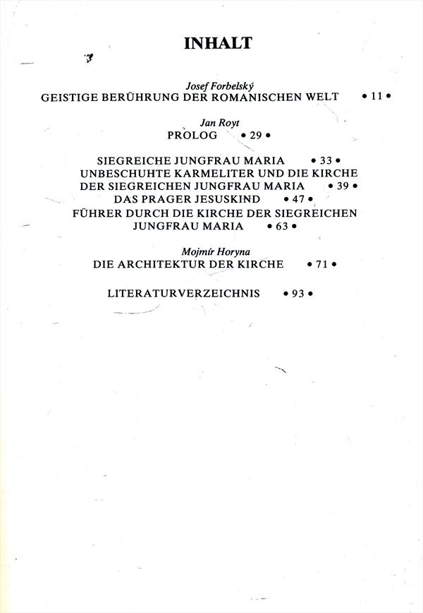 Publikace přibližuje v němčině historii sošky Pražského Jezulátka na pozadí dějin kostela Panny Marie Vítězné na Malé Straně. Zároveň podrobně zmiňuje česko-španělské vztahy v 16.-18. stol. a slouží jako průvodce chrámem v Karmelitské ulici.
