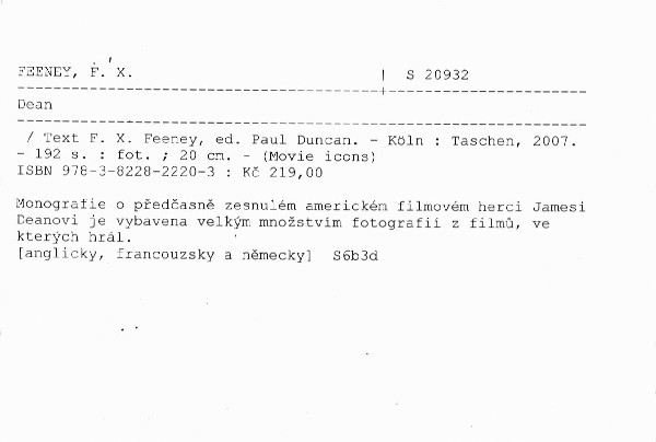 Monografie o předčasně zesnulém americkém filmovém herci Jamesi Deanovi je vybavena velkým množstvím fotografií z filmů, ve kterých hrál.