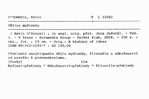 Přehledná encyklopedie dějin myšlenky, filozofie a náboženství od pravěku k postmodernismu.