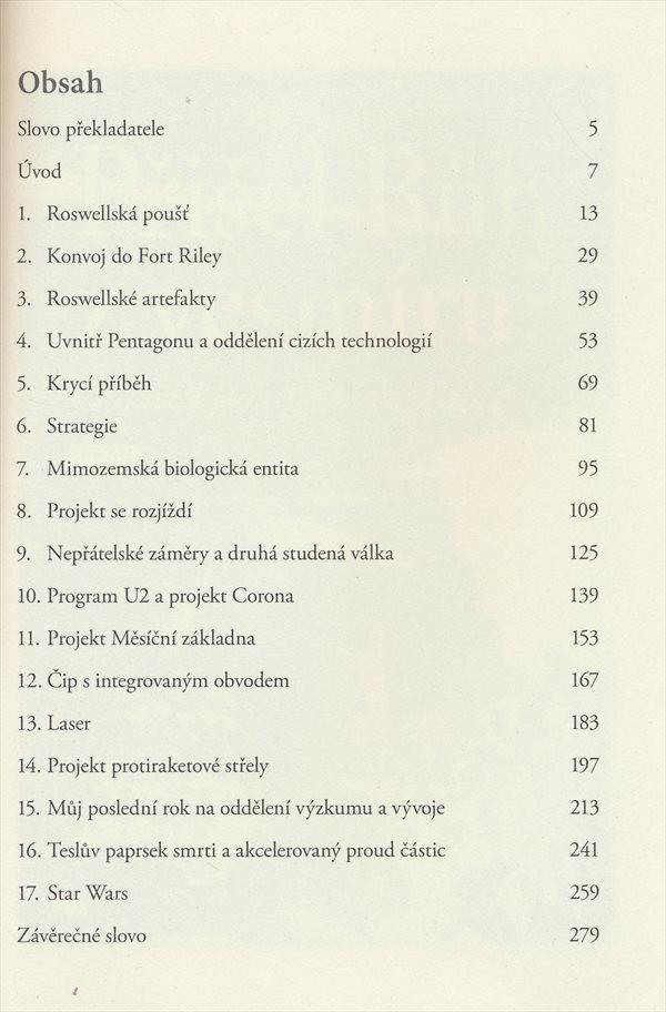 Vzpomínky pracovníka oddělení pro výzkum na americkém ministerstvu obrany. Kniha se rovněž zabývá tzv. roswellským incidentem z roku 1947 a pokusy o využití mimozemské technologie pro vojenské potřeby v čase studené války.