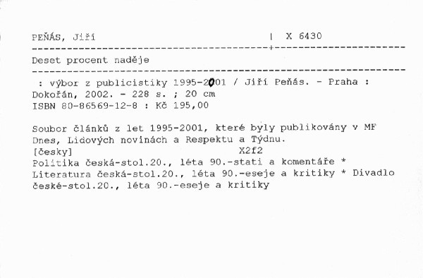 | Podnázev | výbor z publicistiky 1995-2001 |
