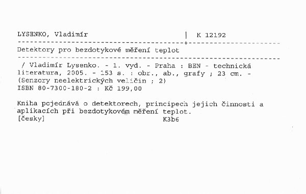 Kniha pojednává o detektorech, principech jejich činnosti a aplikacích při bezdotykovém měření teplot.