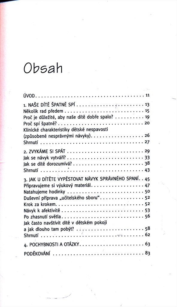 Až 35% dětí mladších pěti let trpí nespavostí, což se projevuje dalšími zdravotními i psychickými problémy. Proto kniha nabízí osvědčenou metodu barcelonského pediatra a neurofyziologa Estivilla. Záleží zde především na rodičích a jejich důslednosti. Metoda předepisuje způsob, jak ukládat děti ke spaní, jak k nim během noci vstávat. Důležité je, aby si dítě osvojilo správný biorytmus, tedy dodržovalo i dobu potřebnou pro odpočinek. Metoda je, podle tvrzení autora, účinná v 96% případů v nichž byla použita.