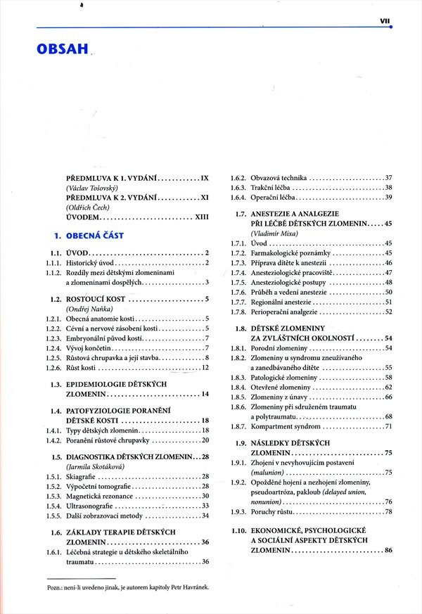 Monografie zabývající se zlomeninami u dětí, historickým vývojem dětské traumatologie, rozdíly dětských zlomenin oproti dospělým.