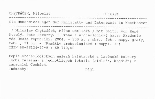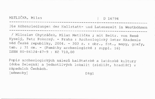 | Název | Die Höhensiedlungen der Hallstatt- und Latenezeit in Westböhmen |
