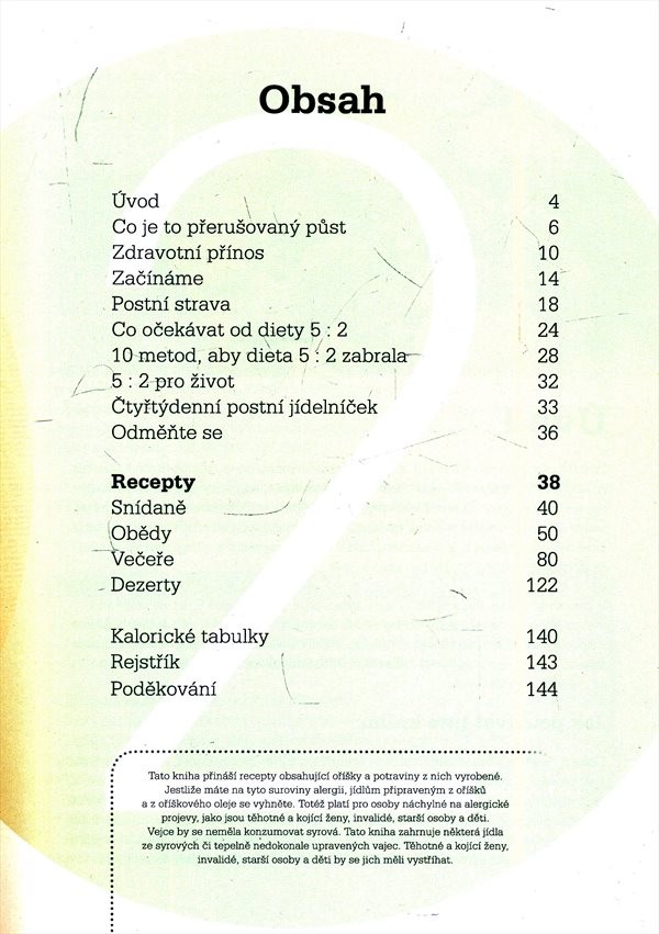 V kuchařce najdeme sto chutných, nízkokalorických receptů, rozdělených na snídaně, obědy, večeře a dezerty, vše s uvedenými kalorickými hodnotami. Publikace obsahuje též přehledné kalorické tabulky a pokyny, jakým způsobem máme postupovat, abychom do svého života bez problémů začlenili postní dietu, v tomto případě dva dny půstu týdně. Doplněno barevnými fotografiemi.