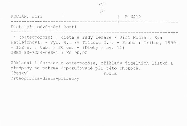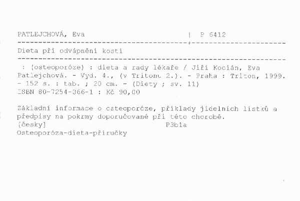 | Podnázev | (osteoporóze) : dieta a rady lékaře |