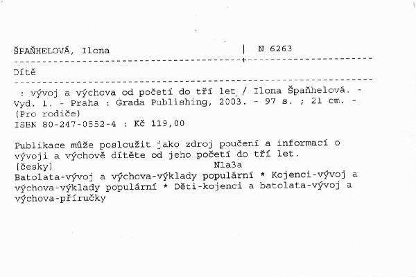 Publikace může posloužit jako zdroj poučení a informací o vývoji a výchově dítěte od jeho početí do tří let.