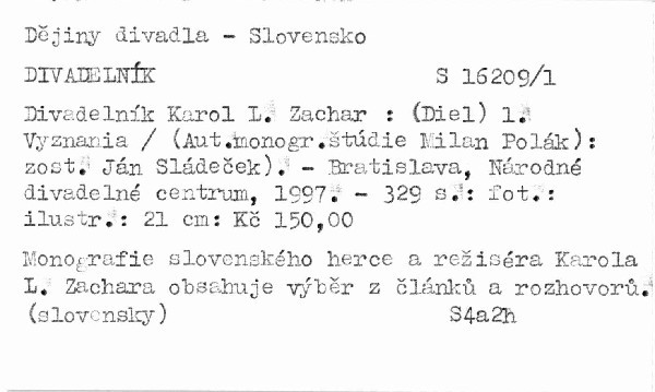 Divadelník Karol L. Zachar ([Diel] 1,)