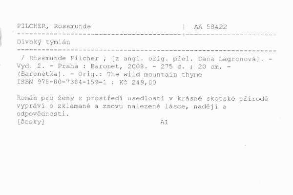 | Autor | Rosamunde Pilcher ; [z angl. orig. přel. Dana Lagronová] |