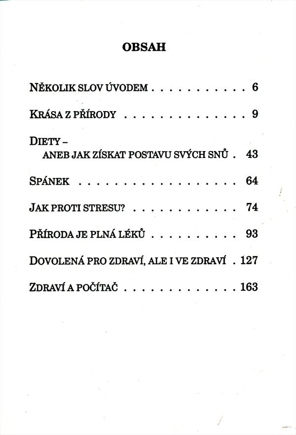 Příručka uvádí stručné rady pro dosažení tělesného i duševního zdraví především pomocí přípravků z přírodních produktů a zvolení dobré životosprávy.