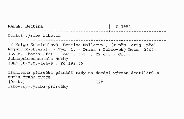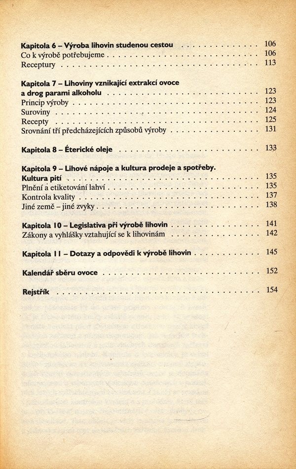 Příručka je věnována domácí výrobě lihovin z jádrového, peckového a drobného ovoce. Autorka se v první části knihy zabývá především přípravou ovocného rmutu a chemickými procesy při kvašení. V další části knihy se dozvíme vše potřebné o destilačním zařízení a samotné destilaci. Nechybí ani kapitola zákonů a vyhlášek vztahujících se k výrobě lihovin. V příručce najdeme i mnoho zajímavých receptů na výrobu likérů.