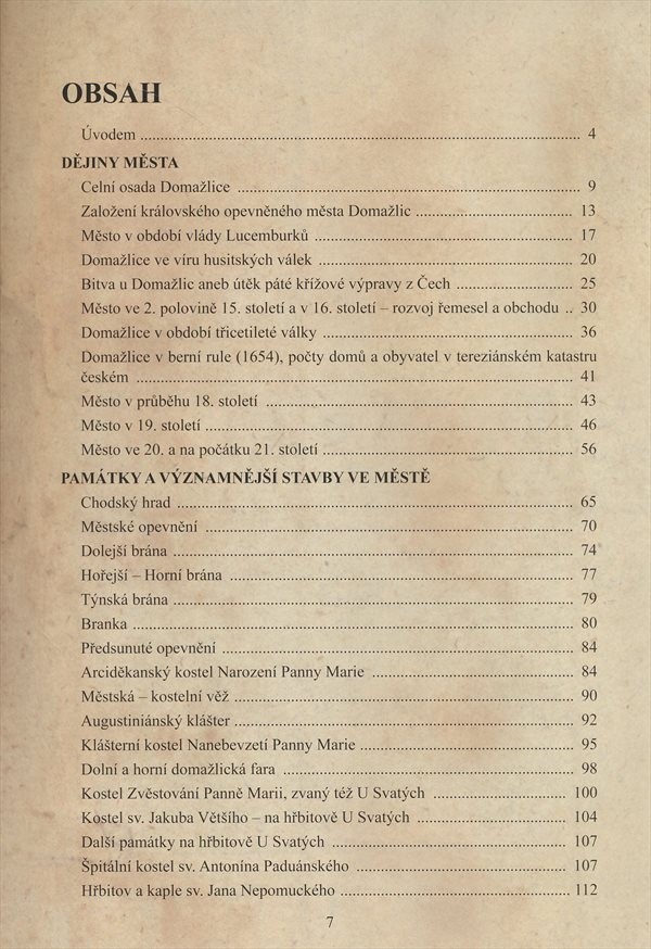 Publikace vychází v roce 2015, kdy uplyne 750 let od první zmínky o hrazeném královském městě Domažlicích. První část knihy mapuje dějiny města, druhá se věnuje podrobnému popisu jednotlivých památek - kostelů, městského opevnění, Chodského hradu, pivovarů, mlýnů atd. Třetí část tvoří podrobné německé resumé. Nakladatelská anotace.