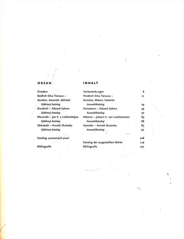 Publikace přináší výběr obrazů, kreseb a grafik z kolekcí čtyř významných sběratelů (Bedřich Silva Tarouca, Eduard Sykora, Arnold Skutezky, Jan II. z Lichtenštejna).