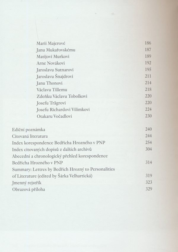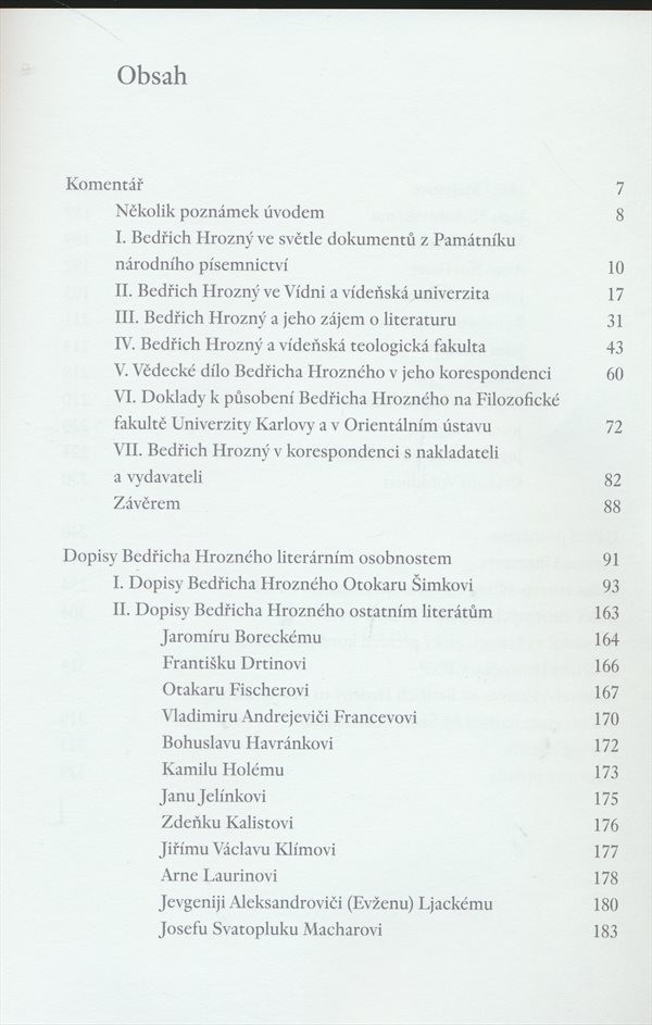 Ucelený materiál z literárního archivu Památníku národního písemnictví, soubor dopisů Bedřicha Hrozného literárním osobnostem, z nichž nejrozsáhlejší je adresován jeho blízkému příteli Otokaru Šimkovi, překladateli.