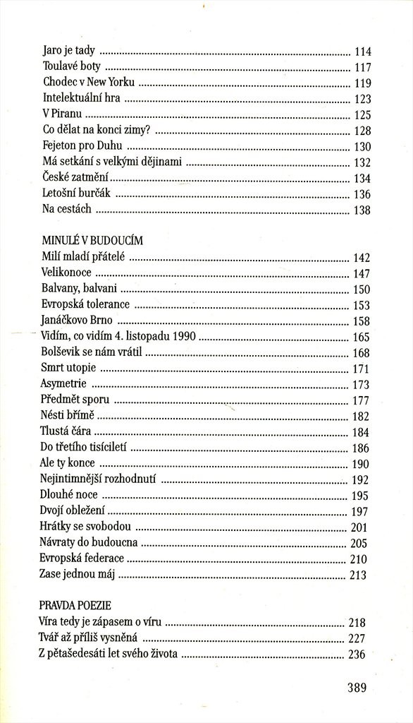 Další svazek Spisů představuje Trefulkovy literární kritiky z 50. a 60. let minulého století (včetně polemiky o poezii Pavla Kohouta), celou řadu fejetonů, dále články napsané pro samizdat, ale i komentáře k polistopadové společenské a politické realitě. Knížka obsahuje vedle textů věnovaných české literatuře a jejím představitelům i úvahy nad všednodenními skutečnostmi, reflexe událostí na české politické scéně, ale i zamyšlení nad vybranými momenty českých a československých dějin, autorovým moravanstvím, česko-německými vztahy či nad hodnotami, které vyznává současná společnost. - Ve svazku shromážděné texty vycházely mj. v časopise Host do domu, v Literárních novinách, Salonu a v dalších periodikách.