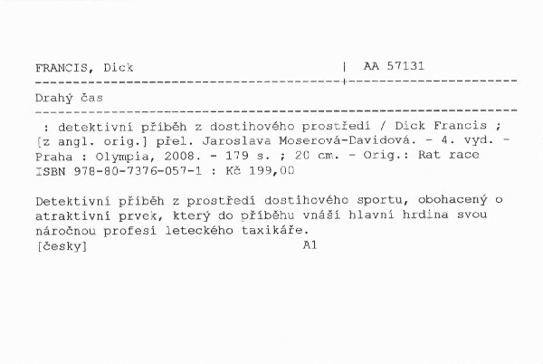 | Autor | Dick Francis ; [z angl. orig.] přel. Jaroslava Moserová-Davidová |