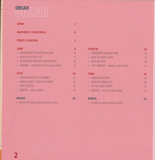 Příručka popisuje pomocí návodného textu a řady fotografií pracovní postupy pro tvorbu dekorativních ozdob z drátů.
