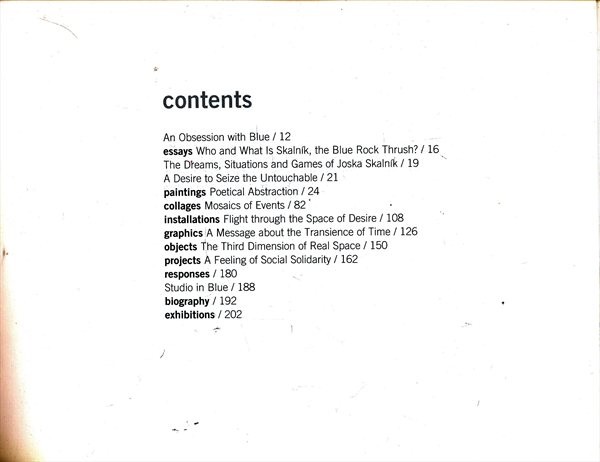 Kniha obsahuje různé ukázky výtvarných technik Josky Skalníka (obrazy, koláže, instalace, grafika, objekty, projekty).
