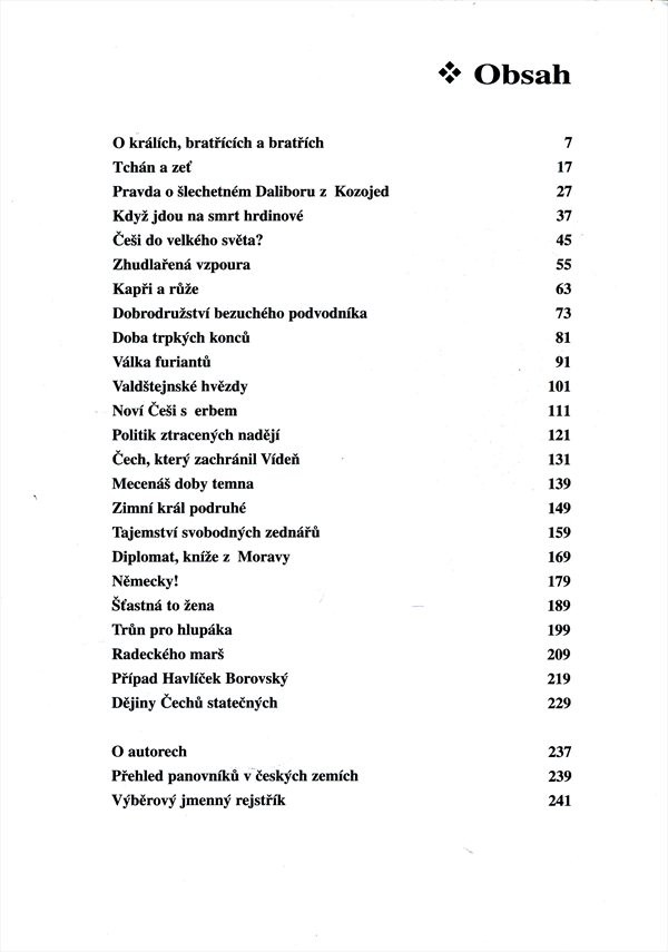 Vyprávění o významných událostech českých dějin a životních osudech vybraných historických osobností se odvíjí po časové ose od 15. po 19. stol.