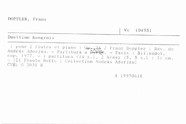 Autor | Franz Doppler ; Rév. de András Adorján |