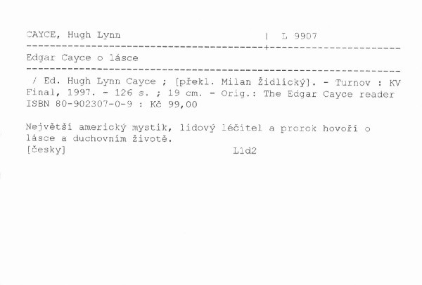 Největší americký mystik, lidový léčitel a prorok hovoří o lásce a duchovním životě.