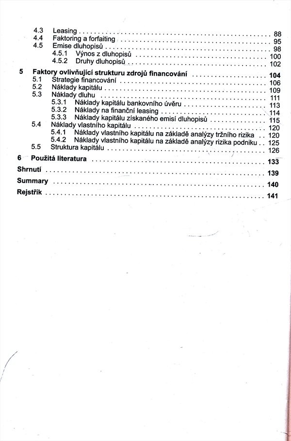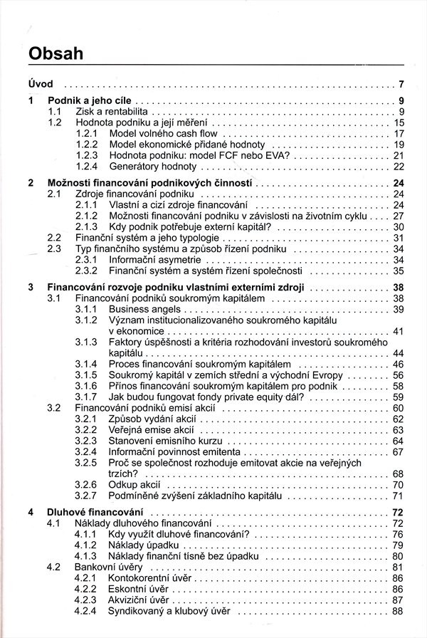 Autorka se neomezuje pouze na popis jednotlivých zdrojů, ale systematicky vysvětluje, které faktory ovlivňují rozhodování vedení podniku při získávání zdrojů financování. Svoje názory a doporučení podporuje příklady z podnikové praxe v ČR i zahraničí. Čtenář dále nalezne možné způsoby a postupy použitelné při rozhodování o možnostech financování, vycházející zejména z analýzy rizika podniku. Nakladatelská anotace.