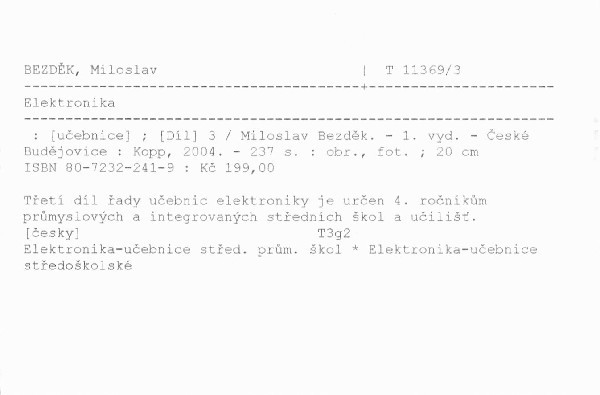 Třetí díl řady učebnic elektroniky je určen 4. ročníkům průmyslových a integrovaných středních škol a učilišť.