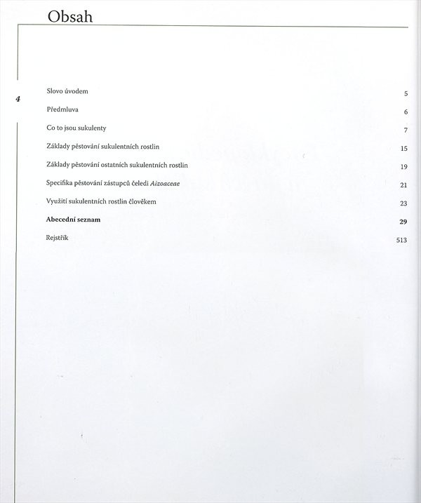 Abecedně řazené kapitoly jsou věnované čeledím a v nich uvedeným jednotlivým druhům, obsahují botanický popis, základní údaje o místě výskytu a rady pro úspěšné pěstování v podmínkách střední Evropy. Představeny jsou i nově objevé druhy, vzácné a málo pěstované rostliny.
