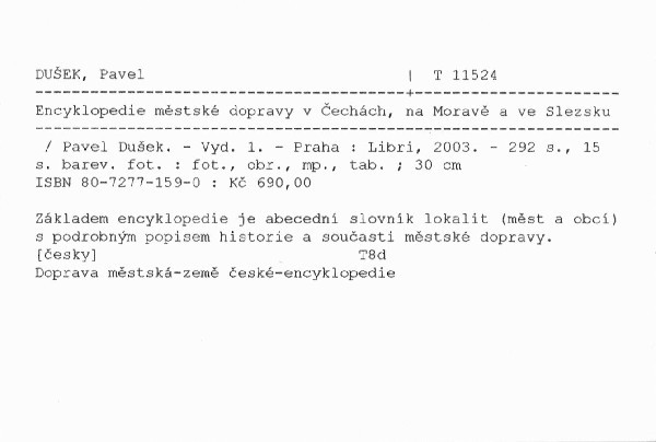 | Název | Encyklopedie městské dopravy v Čechách, na Moravě a ve Slezsku |