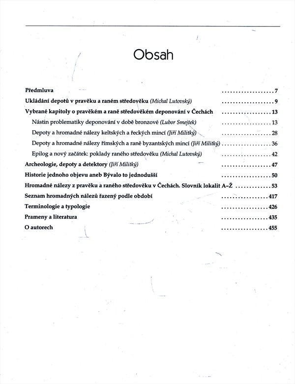Abeceně řazený přehled hromadných nálezů z doby pravěku a raného středověku, které byly objeveny na českým území. Vlastnímu přehledu předcházejí kapitoly věnované českému pravěkému a raně středověkému deponování.