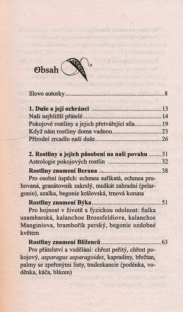 Autorka popisuje, jak působí jednotlivé druhy běžně pěstovaných rostlin na naši psychiku, zdravotní stav a vztahy.