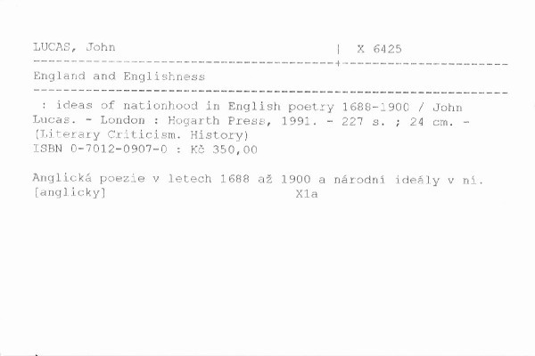 | Podnázev | ideas of nationhood in English poetry 1688-1900 |